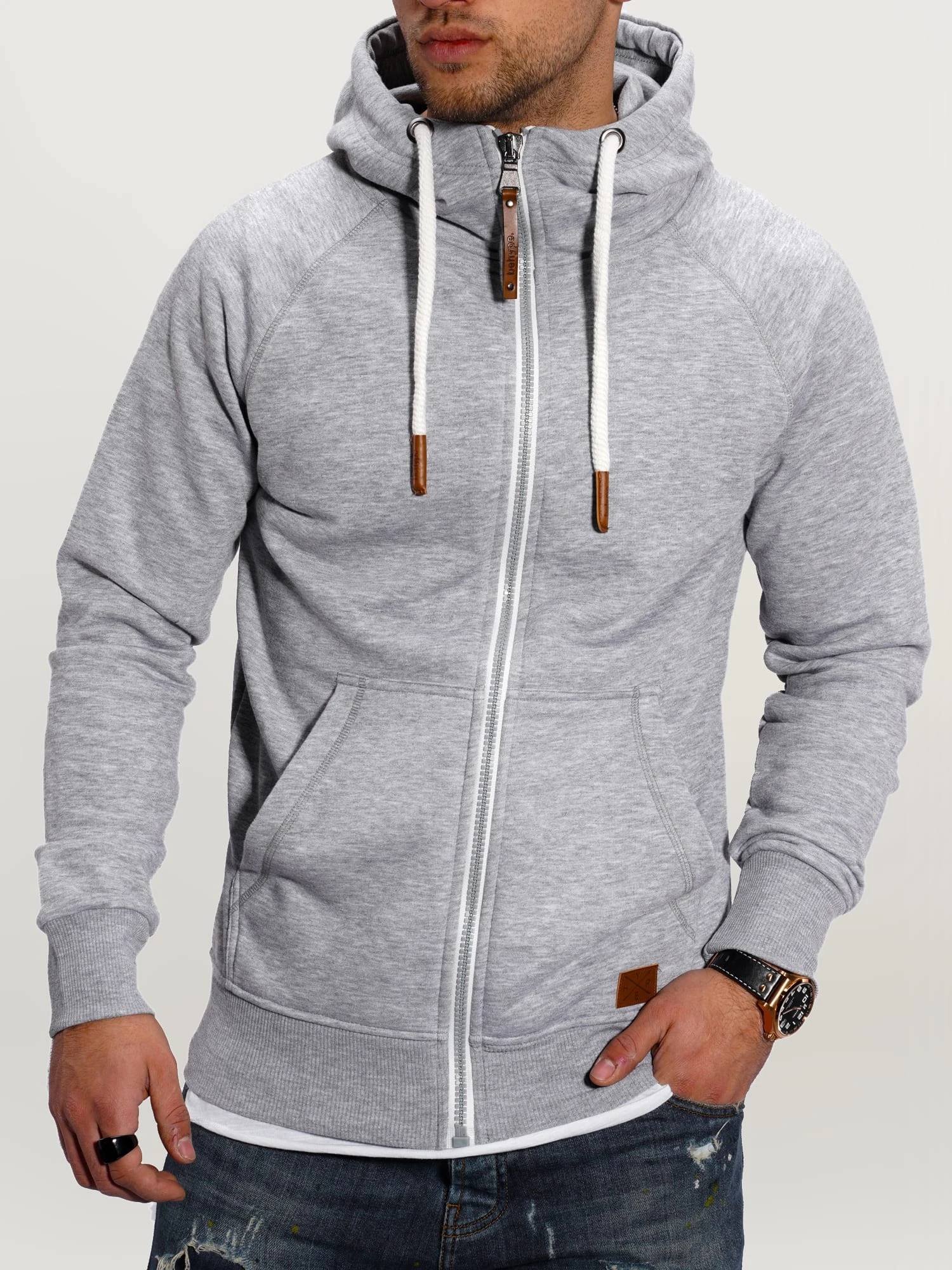 Ideal für kühlere Tage oder aber auch den Sport geeignet ist diese Sweatjacke von Behype für Herren. Sie besteht aus Baumwolle und Polyester und bietet dank hohem Kragen und kuscheliger Kapuze einen angenehm warmen Tragekomfort. Das Modell ist schlicht gehalten und wird durch einen Patch am Saum aufgelockert. Raglanärmel bieten einen optimalen Sitz und runden das Design perfekt ab.